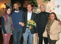 Erfreulich war auch die Anwesenheit des Bürgermeisters Halbe und des alt Bürgermeisters Noss, die gemeinsam mit den Teilnehmern für Frieden und gegen Gewalt und Rechtsextremismus in Bergneustadt standen. Die Abschlusskundgebung fand in diesem Jahr aufgrund der besonderen Situation am Rathausplatz statt. Beachtlich war auch die Ansprache von Peter Rothausen, Vorsitzender des Caritas Verbandes Oberberg. Er sprach sich in einem Gebet für Frieden, Gerechtigkeit und Freiheit aus. Die Vertreter der politischen Parteien aus Bergneustadt (GRÜNE UND SPD) setzten in Ihren Ansprachen ein friedliches und deutliches Zeichen für Frieden, Freiheit und Toleranz. Axel Krieger, Fraktionssprecher der GRÜNEN, las einige Abschnitte aus dem Buch "Was bleibt mir übrig" von Dieter Hildebrandt, in dem dieser gemahnte, der Gewalt und Verbrechen des 3. Reiches und deren Urheber stets zu erinnern. Wie immer wurde die Abschlusskundgebung der Veranstaltung musikalisch durch die Rink Familie begleitet.